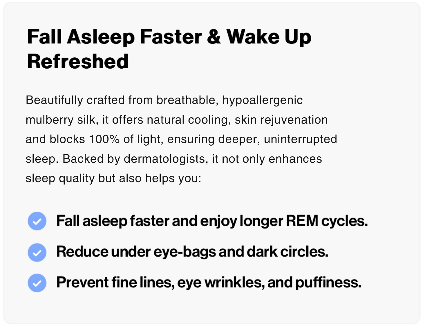 Our sleep mask is made from 100% mulberry silk, known for its softness and skin-friendly properties.