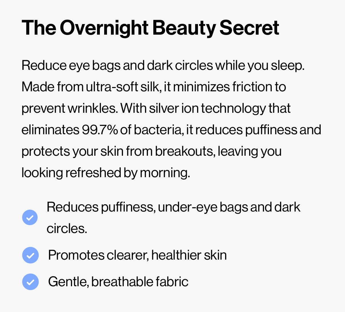 Treatment: Antibacterial silver ion treatment - 99.7% effective at reducing bacteria, promoting clearer skin.